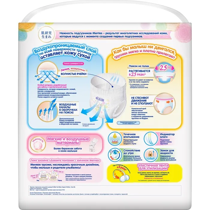 • Симпатичный дизайн с зайкой Merries подарит малышу хорошее настроение.