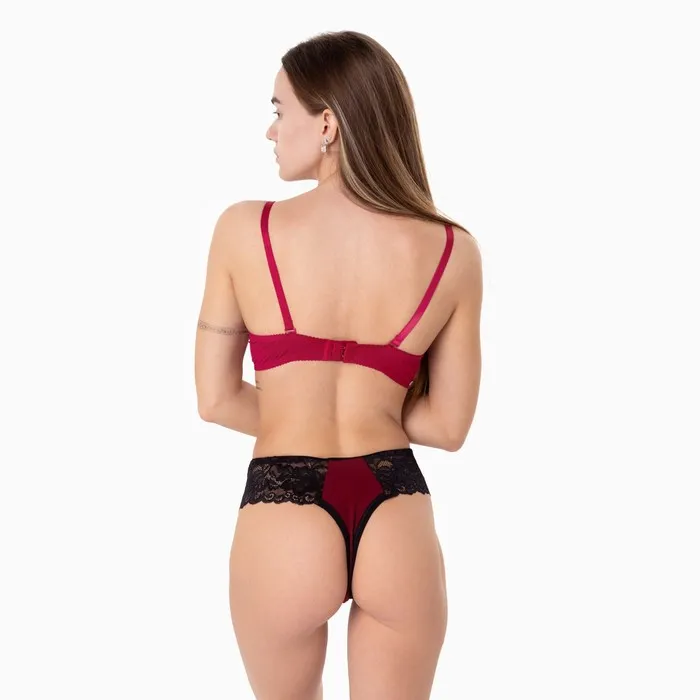 Трусы женские стринги, цвет бордовый/чёрный, размер 44 — Характеристики