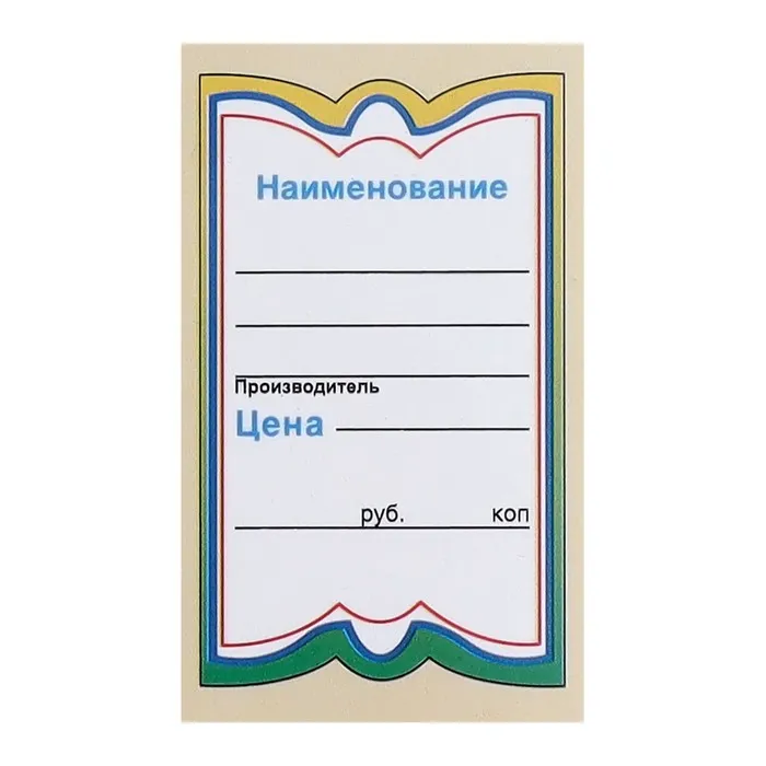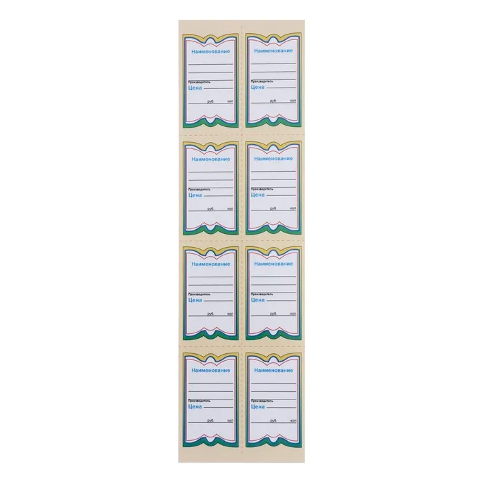 Основа: картон;Форма: ценника прямоугольная;Размер ценника: 41,25 х 67 мм;Количество листов: 25;