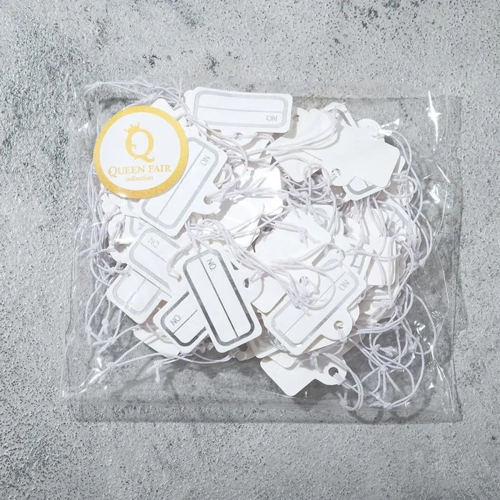 Набор ценников для ювелирного магазина (100 шт.) — идеальный аксессуар для маркировки украшений и аксессуаров на витринах. Компактные бирки позволяют аккуратно разместить информацию о цене или характеристиках изделия, не отвлекая внимание от самого украшения. Эти ценники помогут поддерживать порядок и эстетичность на витринах, обеспечивая удобную организацию и лёгкое обновление информации о товарах.