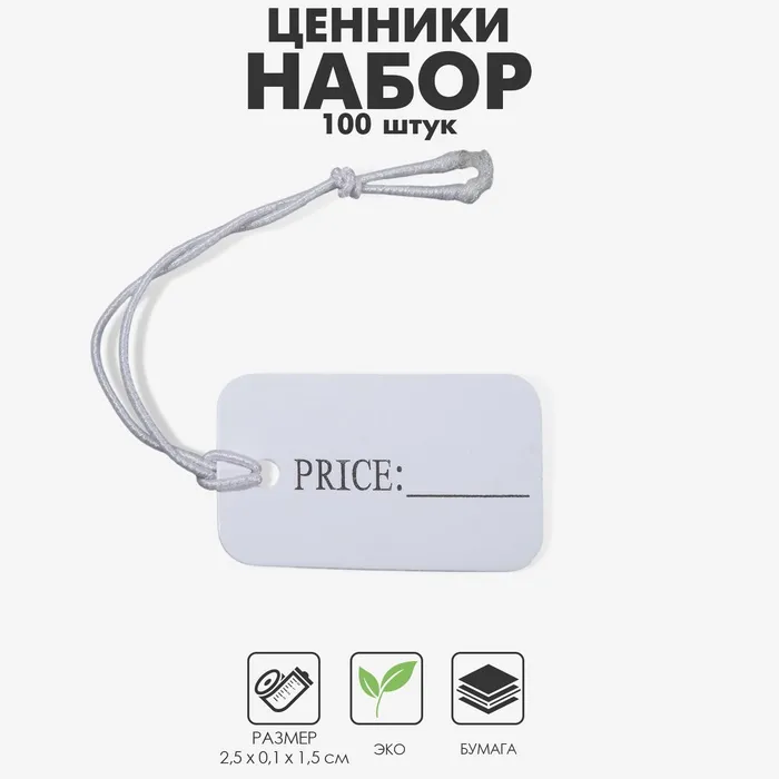 Ценник набор 100 шт., с надписью 1,5×2,5, цвет белый — Характеристики