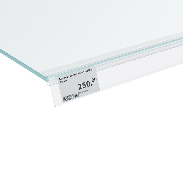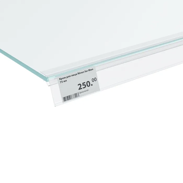 Ценникодержатель для крепления на стеклянные полки — это функциональный аксессуар, который поможет вам удобно размещать информацию о товарах. С размерами 100×4×3,9 см и прозрачным цветом, он идеально вписывается в любой интерьер, не отвлекая внимание от выставленных продуктов. Позволяет легко демонстрировать ценники и описания, сохраняя аккуратный и профессиональный вид витрины. Идеален для использования в магазинах, кафе и других торговых точках.