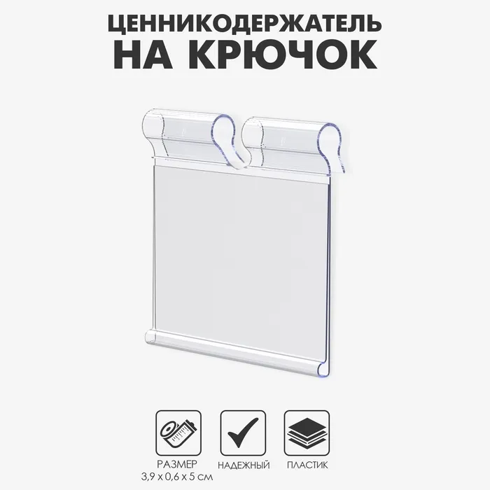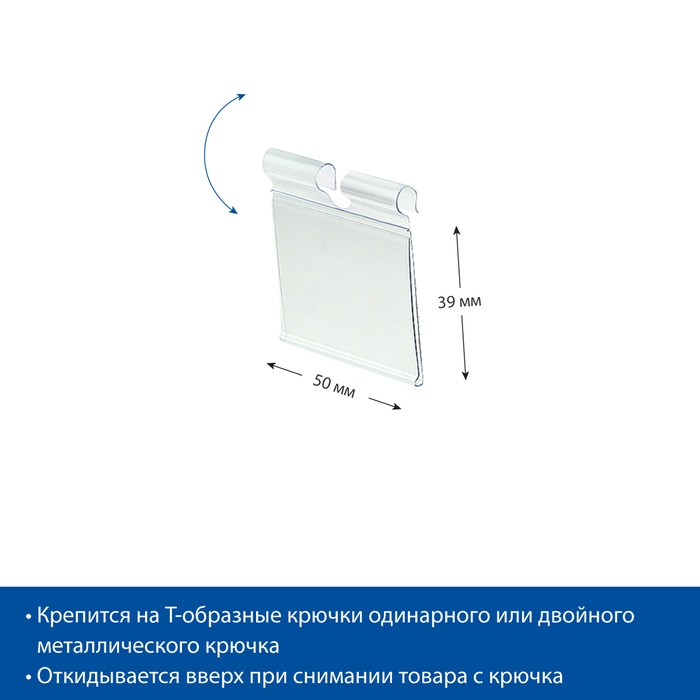 Ценникодержатель на крючок откидной 3,9×5 см, цвет прозрачный — Характеристики