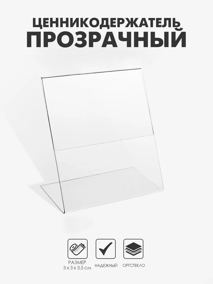 Ценникодержатель из оргстекла — идеальное решение для профессиональной демонстрации ценников и информационных табличек в магазинах, выставочных залах и на мероприятиях. Этот стильный и прочный аксессуар позволяет эффективно представлять информацию о товарах, привлекая внимание клиентов. Простой в использовании, он обеспечивает быструю замену ценников: просто снимите защитную пленку и разместите информацию в держателе. Организуйте пространство своего магазина с помощью ценникодержателя из оргстекла, который подчеркнет стиль вашего интерьера и создаст аккуратный вид. Обеспечьте доступность и видимость ценников и характеристик товаров, сделав покупки для ваших клиентов более удобными и информативными.