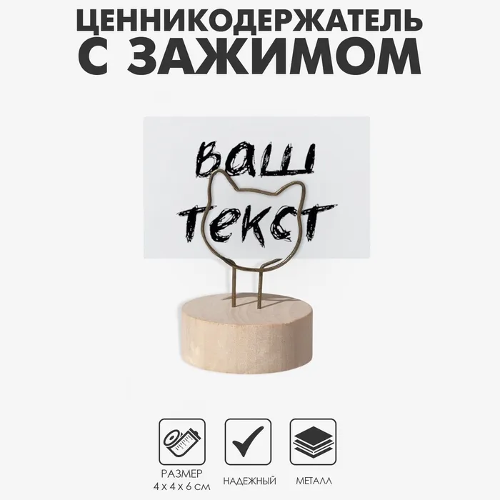 Ценникодержатель с зажимом «Кот», 4×4×6 см, цвет чернёное золото — Характеристики