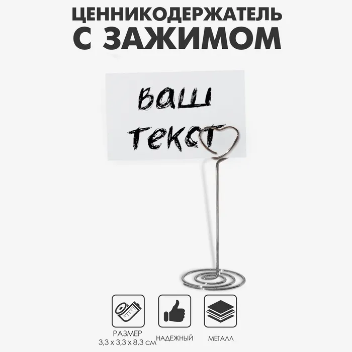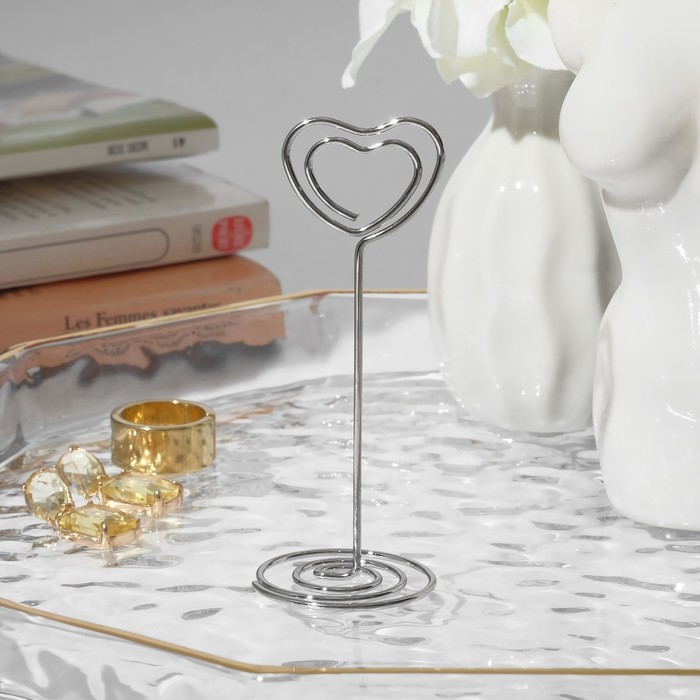 Ценникодержатель с зажимом «Сердце», 3,3×3,3×8,3 см, цвет серебро — Характеристики