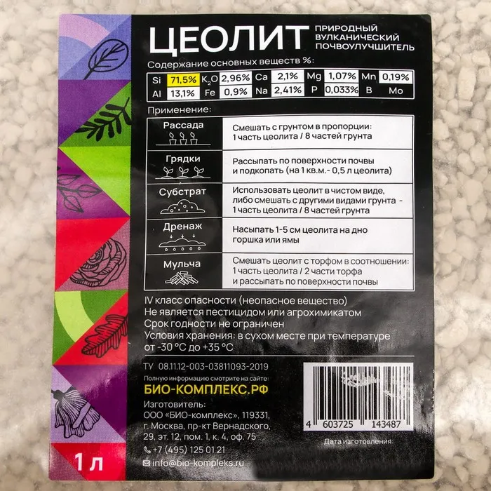 Цеолит природный БИО-комплекс, 1 л — Характеристики