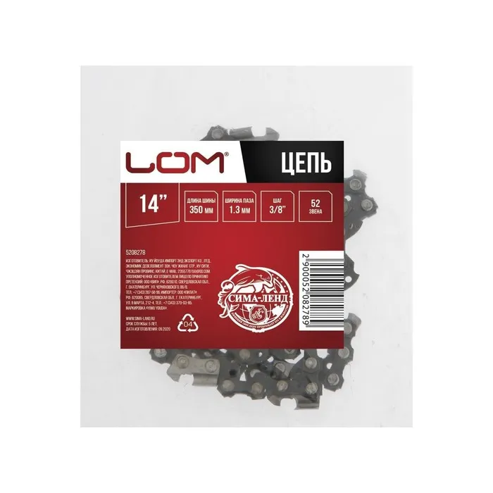 Цепь для бензопилы ЛОМ, 14", 350 мм, ширина паза 1.3 мм, шаг 3/8", 52 звена — Характеристики