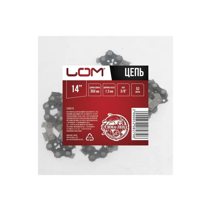 Цепь для бензопилы ЛОМ, 14", 350 мм, ширина паза 1.3 мм, шаг 3/8", 53 звена — Характеристики