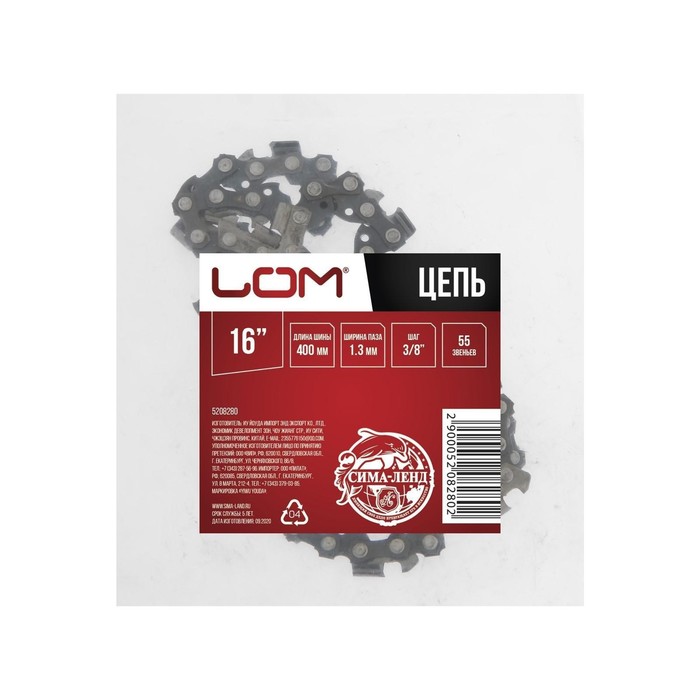 Цепь для бензопилы ЛОМ, 16", 400 мм, ширина паза 1.3 мм, шаг 3/8", 55 звеньев — Характеристики