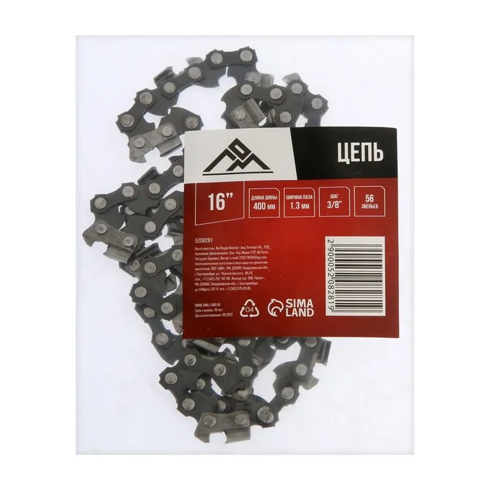 Цепь для бензопилы ЛОМ, 16", 400 мм, ширина паза 1.3 мм, шаг 3/8", 56 звеньев — Характеристики