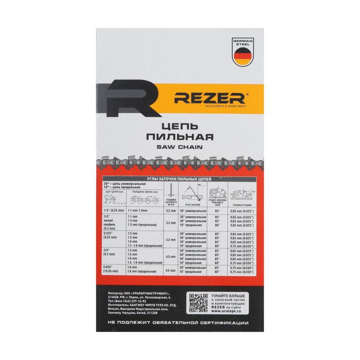 Цепь для бензопилы Rezer PS-9-1.3-62, 18", шаг 3/8", паз 1.3 мм, 62 звена, Partner/Poulan — Характеристики