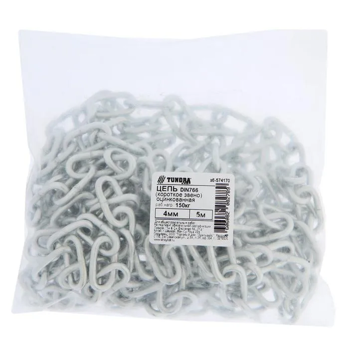 Цепь короткозвенная ТУНДРА krep DIN766, 4 мм, цинк, 5 м — Характеристики