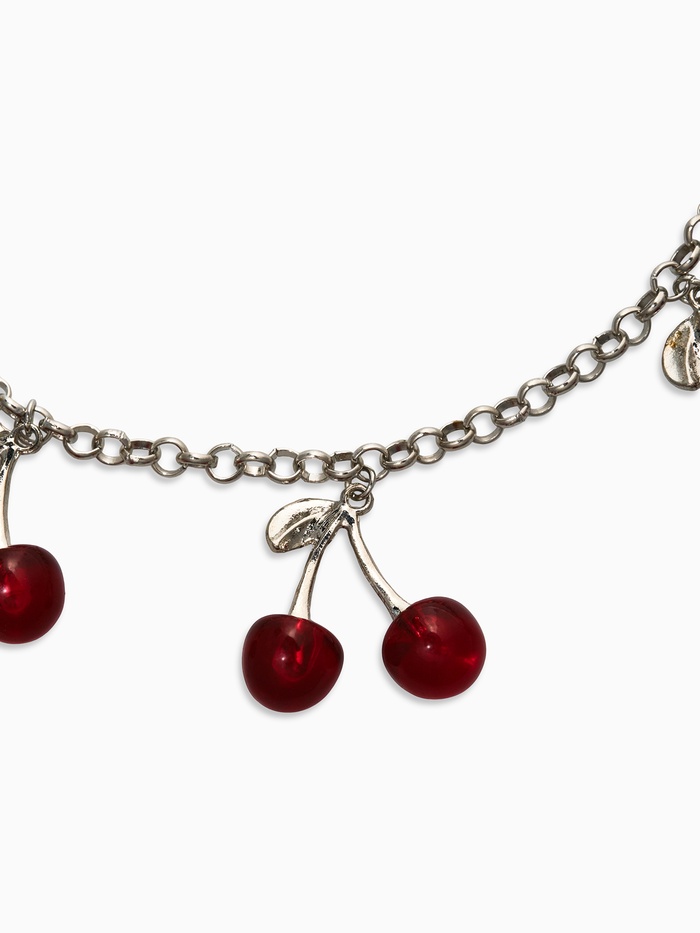 Приготовьтесь удивлять окружающих своим утончённым вкусом и чувством стиля с изысканной цепью с подвесками «Вишня». Этот аксессуар мгновенно привлечёт внимание своей яркой тематикой и необычной комбинацией материалов, создавая эффектный образ для каждой современной женщины.