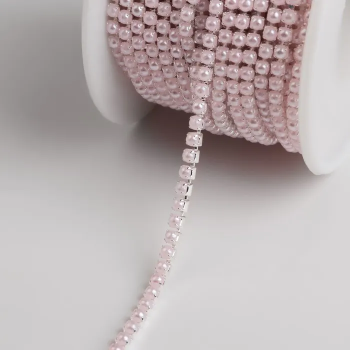 Нежно-розовая цепь с жемчужными бусинами — изысканное решение для создания элегантных украшений и декора. Комбинация металлических звеньев и пластиковых жемчужин диаметром 2 мм в плетении SS6 образует утончённую нить длиной около 9 метров. Универсальный оттенок подходит для свадебного декора, бижутерии в стиле шебби-шик или оформления интерьера.