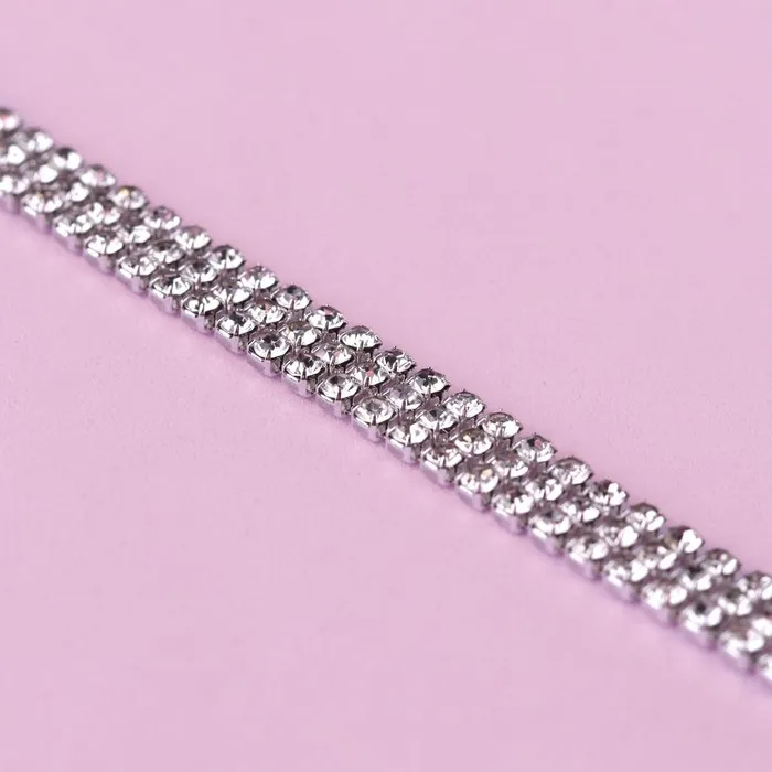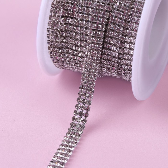 Цепь со стразами, 3 ряда, металл, стекло, 6 мм, 4.5±0.5 м, цвет серебряный
