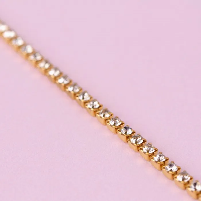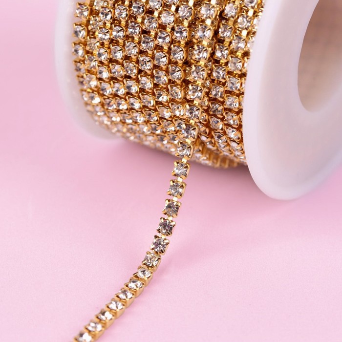 Цепь со стразами, металл, стекло, 2 мм, 9±1 м, цвет золотой