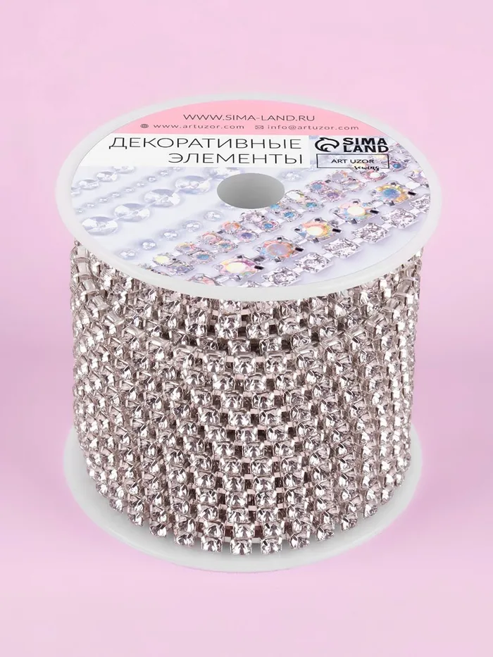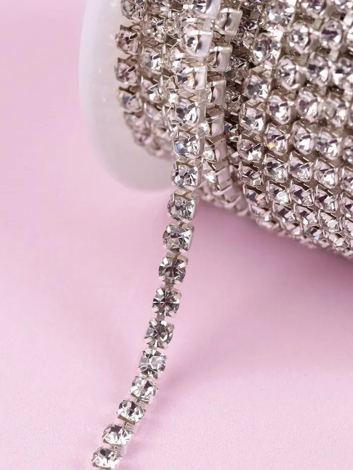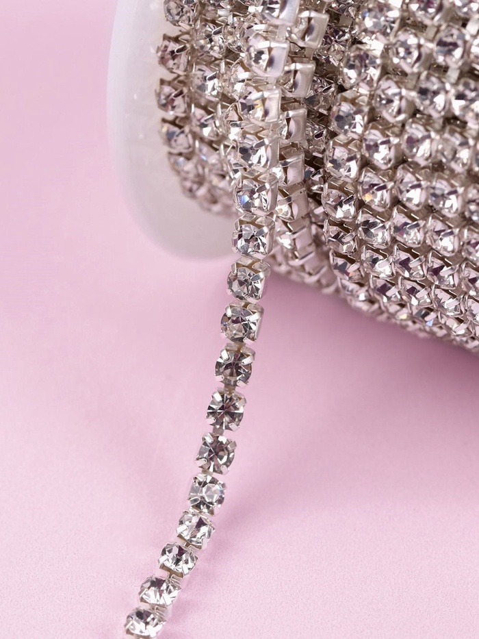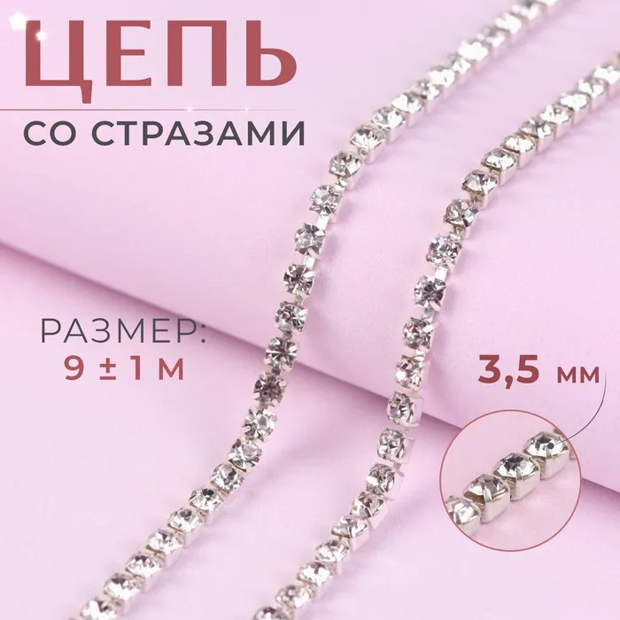 Цепь со стразами, металл, стекло, 3.5 мм, 9±1 м, цвет серебряный — Характеристики