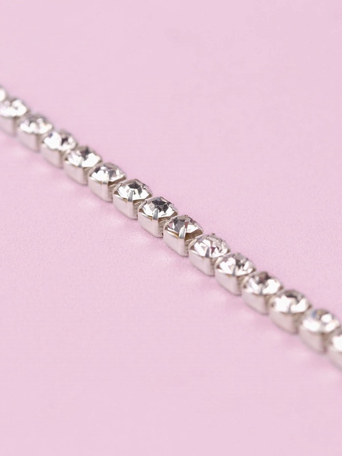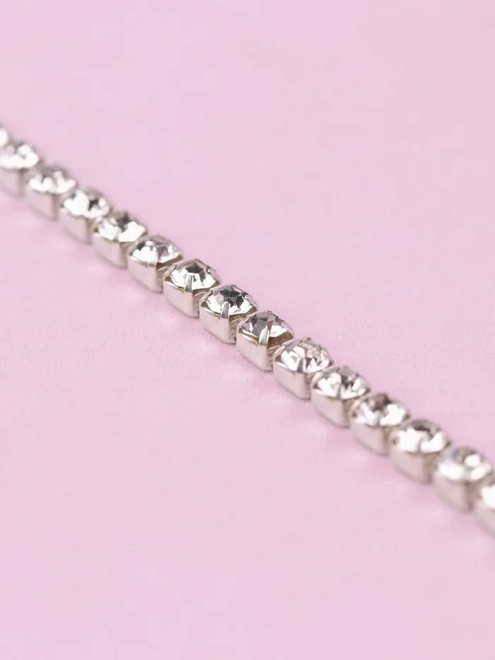 Цепь со стразами, металл, стекло, 3.5 мм, 9±1 м, цвет серебряный