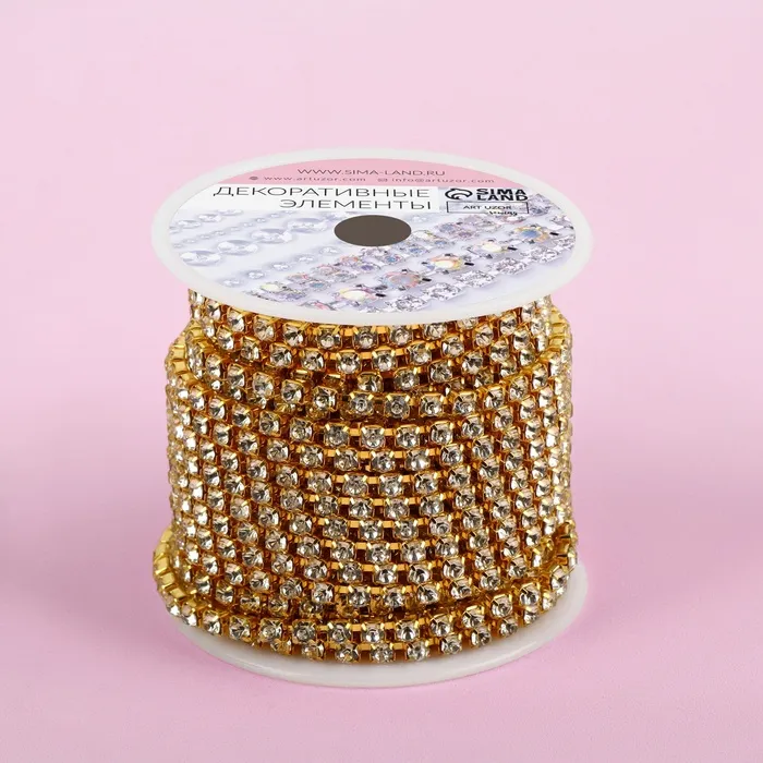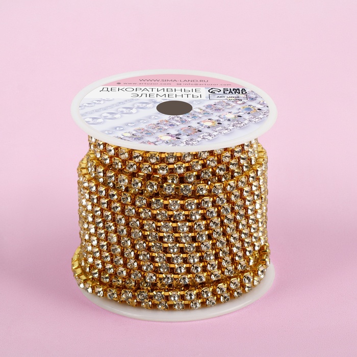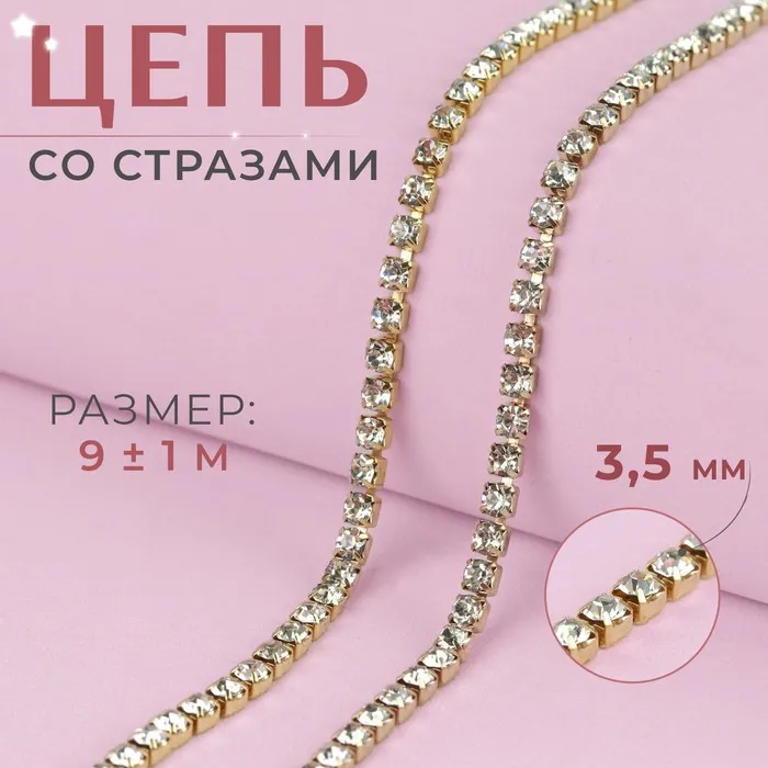 Цепь со стразами, металл, стекло, 3.5 мм, 9±1 м, цвет золотой — Характеристики