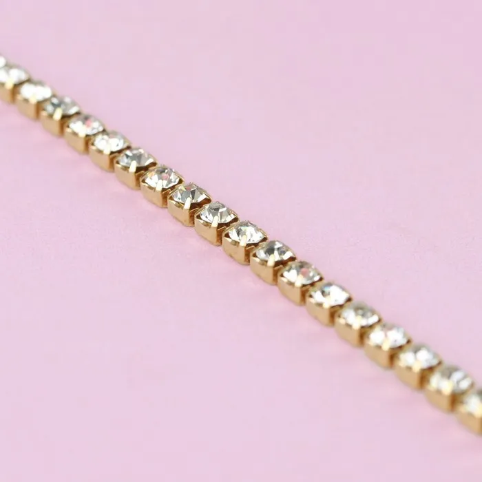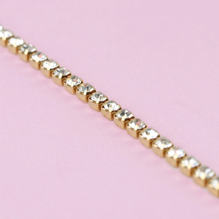 Цепь со стразами, металл, стекло, 2 мм, 9±1 м, цвет золотой