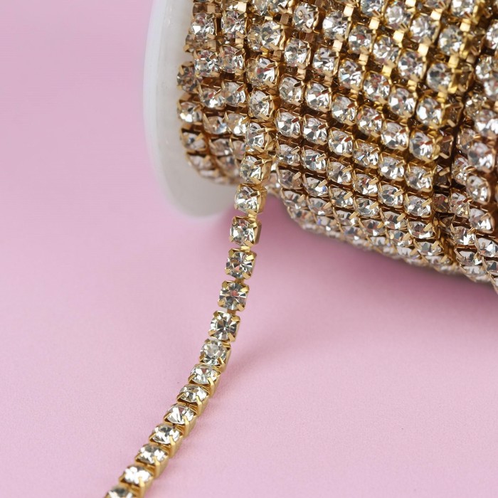 Цепь со стразами, металл, стекло, 3.5 мм, 9±1 м, цвет золотой