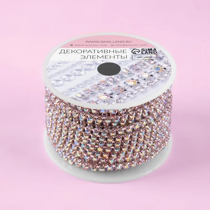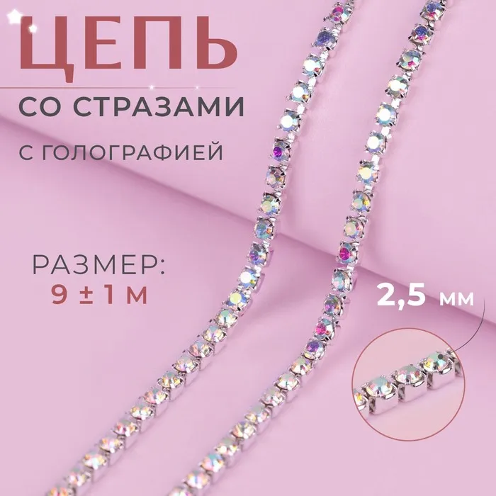 Цепь со стразами, с голографией, металл, стекло, 2.5 мм, 9±1 м, цвет серебряный — Характеристики