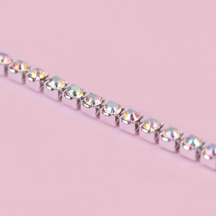 Цепь со стразами, с голографией, металл, стекло, 2.5 мм, 9±1 м, цвет серебряный