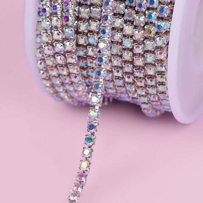 Цепь со стразами, с голографией, металл, стекло, 3 мм, 9±1 м, цвет серебряный