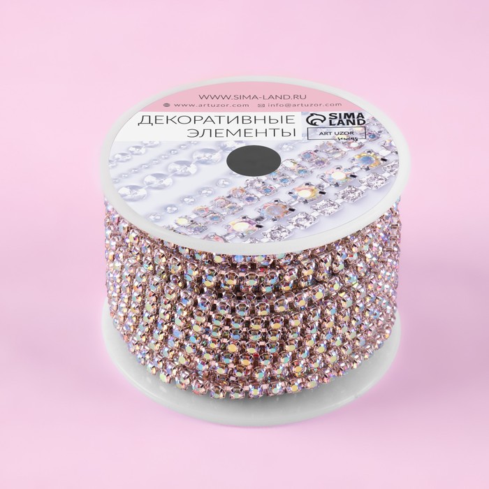 Цепь со стразами, металл, стекло, 3.5 мм, 9±1 м, цвет золотой