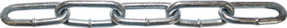 Звенья цепи овальной формы, соединенные между собой, имеют покрытие из белого цинка. Это обеспечивает защиту от коррозии и долговечность в использовании. Внутренняя длина звена варьируется от 26 до 66 мм, что делает её универсальной для различных задач.