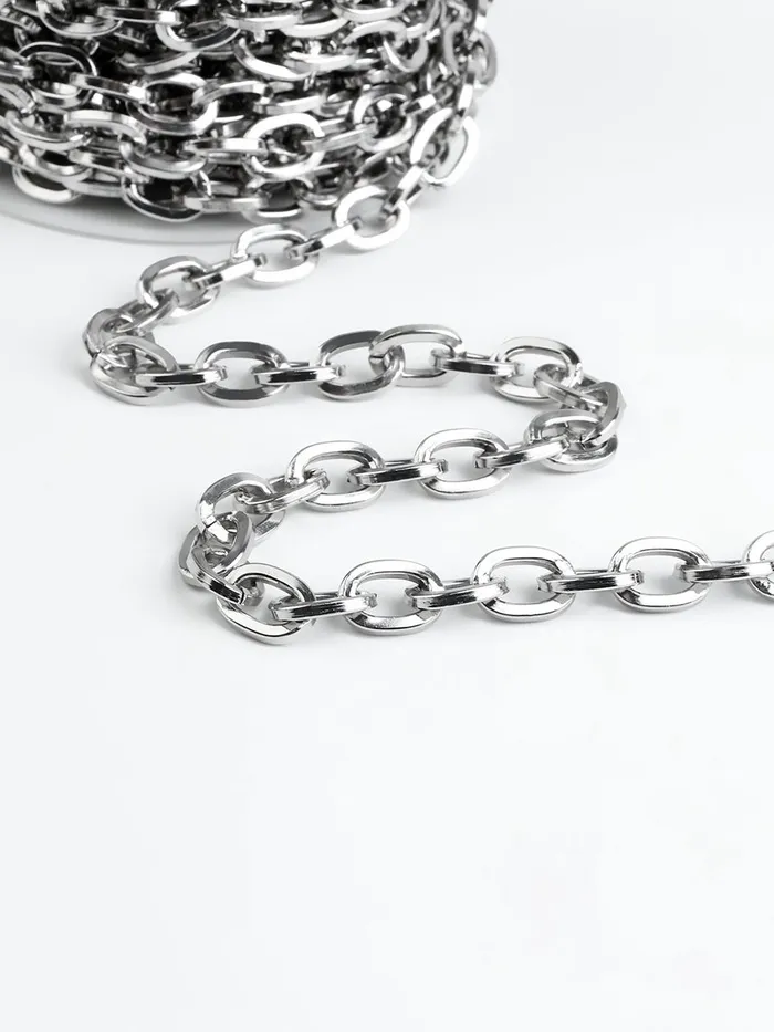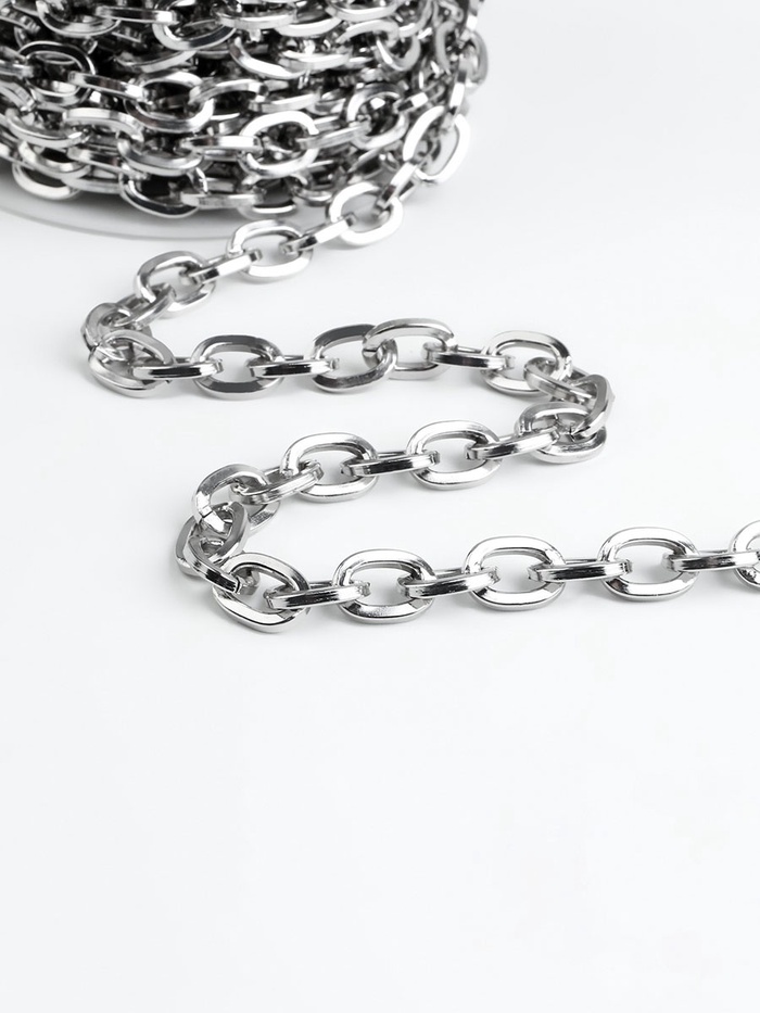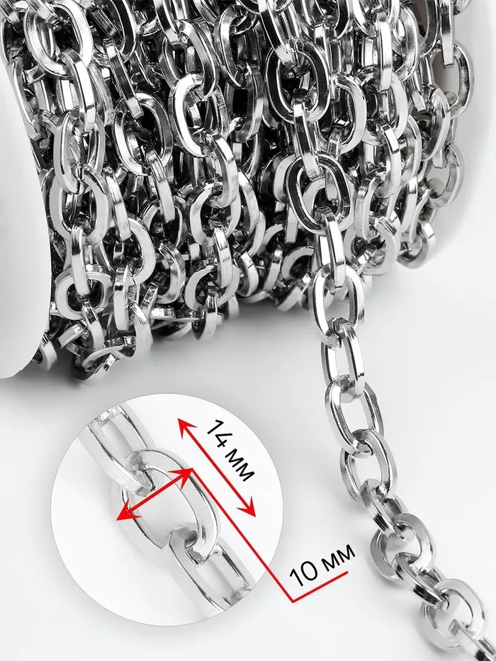 Декоративная цепь подойдет для оформления витрин, создания подвесных конструкций, зонирования пространства или изготовления стильной ручки для сумки. Алюминий не ржавеет, что делает его уместным в интерьере и в повседневной носке. Работайте с материалом без специальных инструментов — он легко режется и принимает нужную форму.