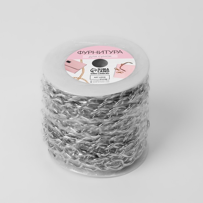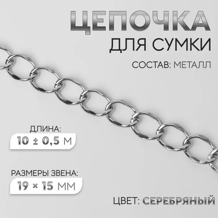 Цепочка для сумки, металлическая, 19×15 мм, 10±0.5 м, цвет серебряный — Характеристики