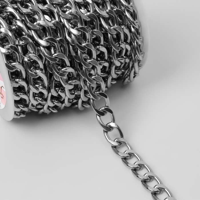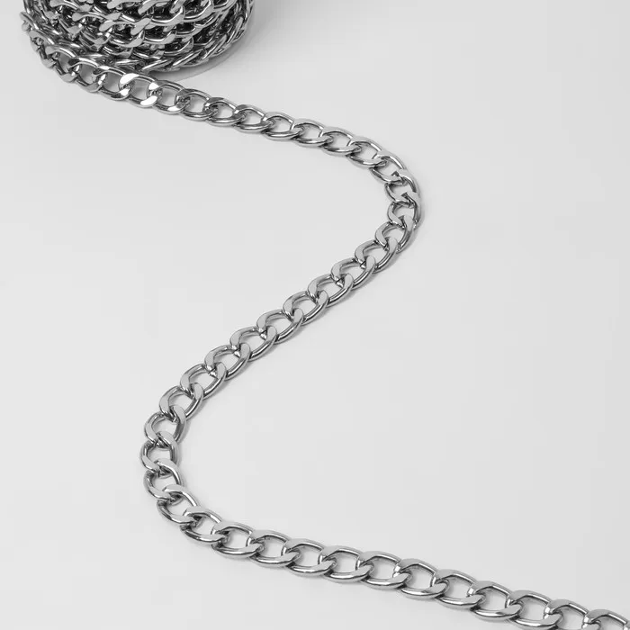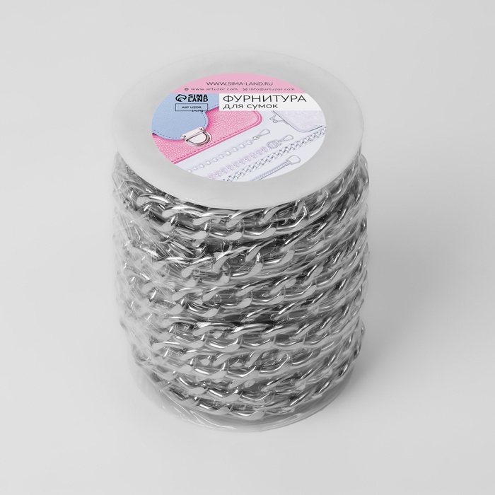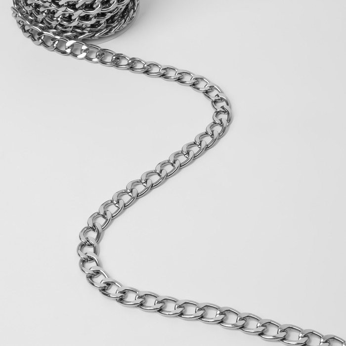 Цепочка для сумки, металлическая, плоская, 18×13 мм, 10±0.5 м, цвет серебряный — Характеристики