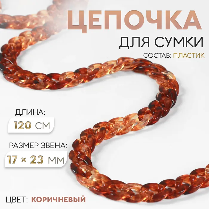 Цепочка для сумки, пластиковая, 17×23 мм, 120 см, коричневая — Характеристики