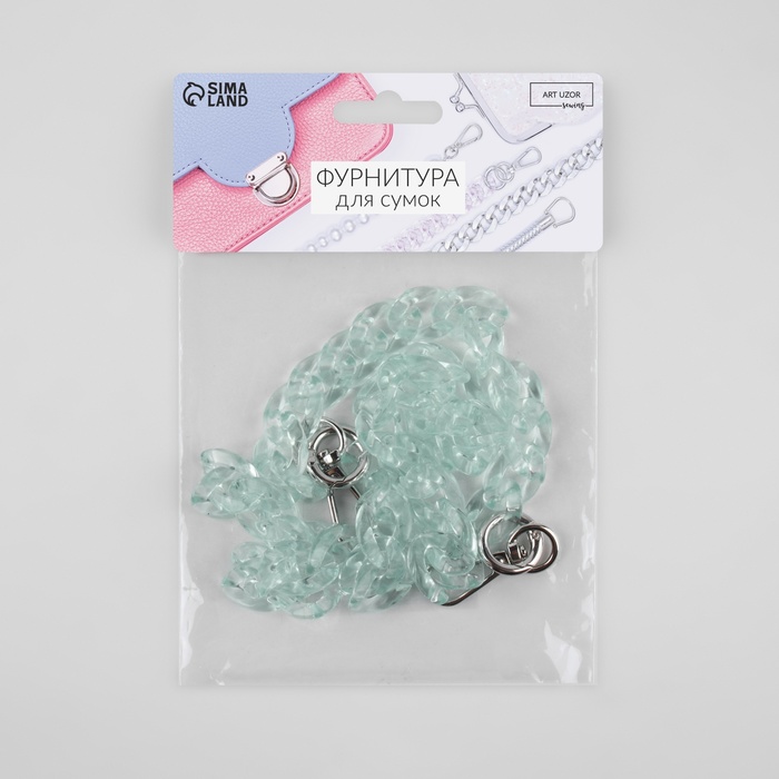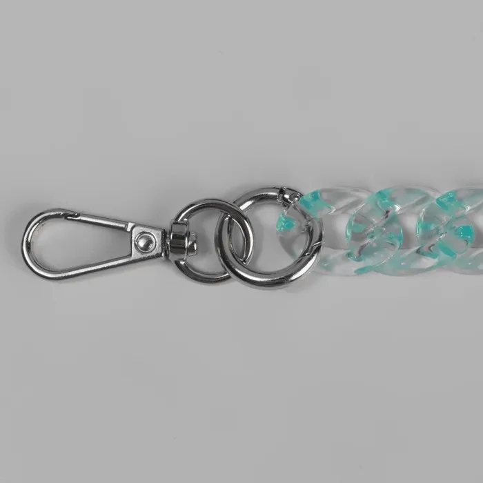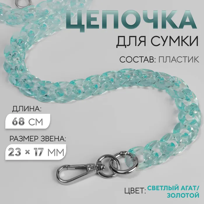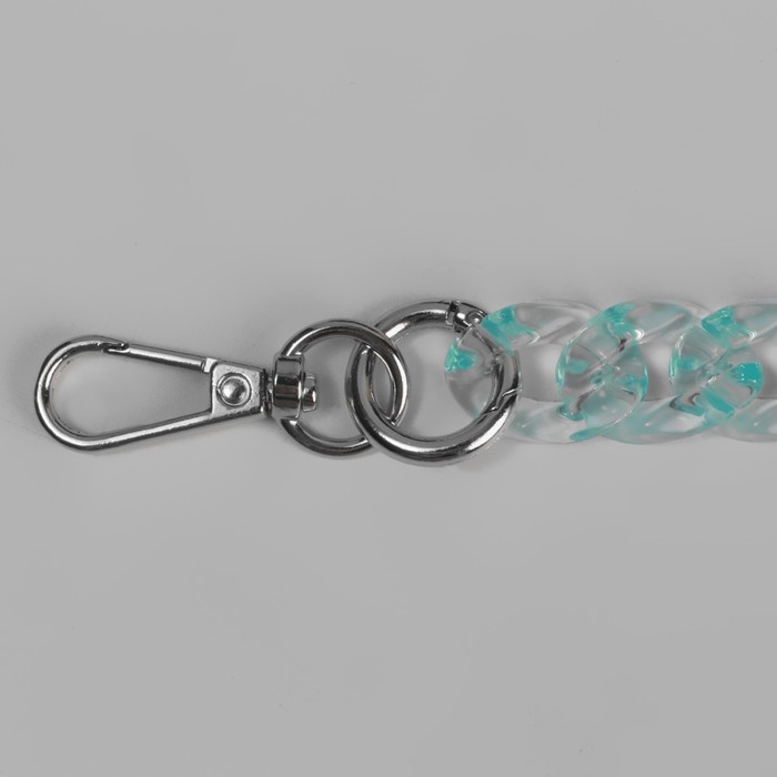 Цепочка для сумки, пластиковая, с карабинами, 23×17 мм, 68 см, цвет бирюзовый, серебряный — Характеристики