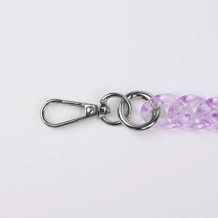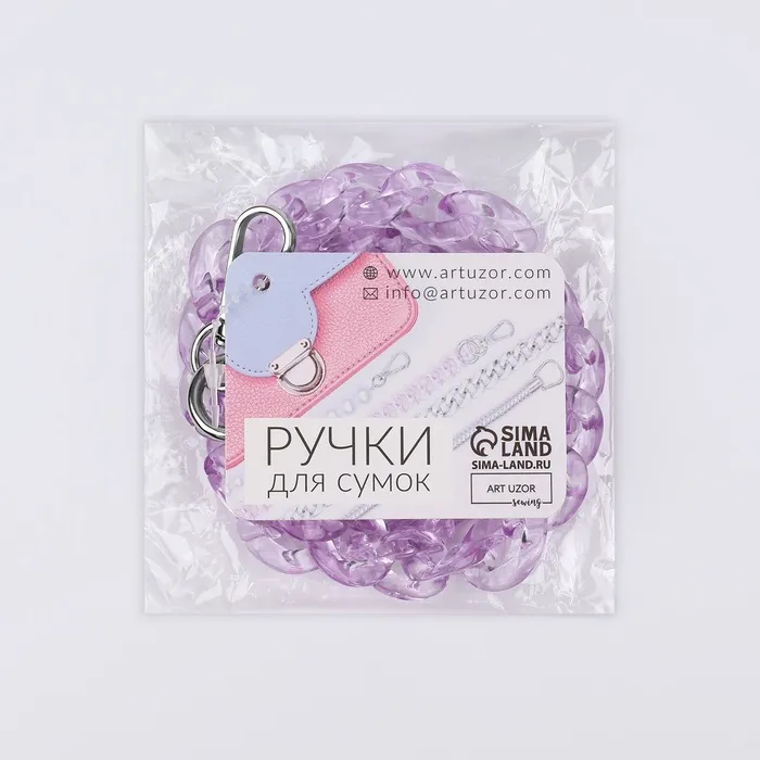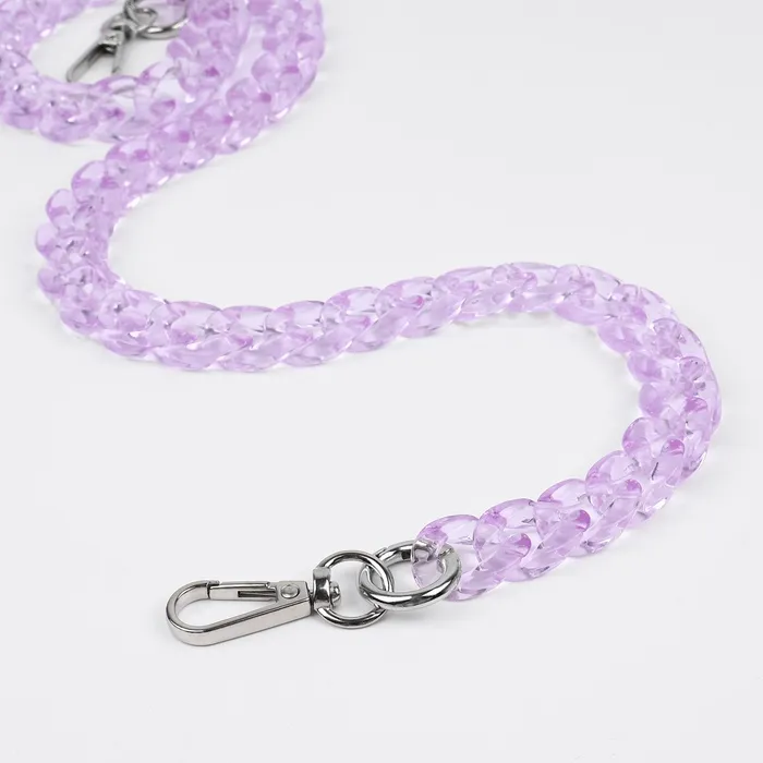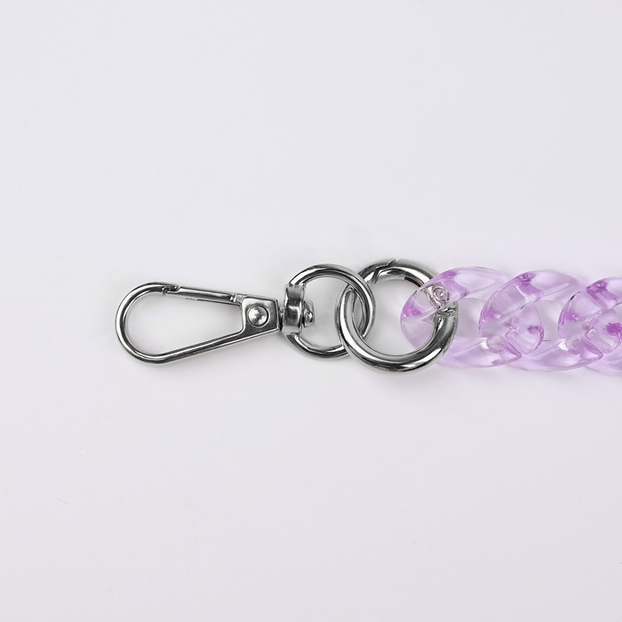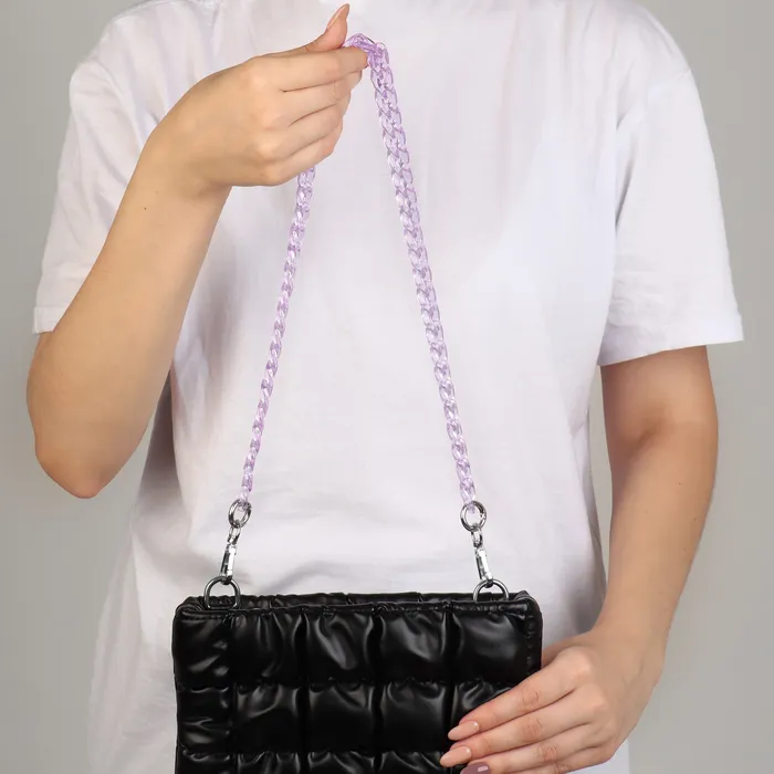 Цепочка для сумки, пластиковая, с карабинами, 23×17 мм, 68 см, цвет сиреневый, серебряный — Характеристики