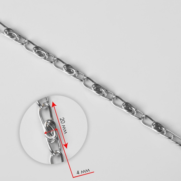 Цепочка для сумки, с карабинами, алюминиевая, 4×13 мм, 120 см, цвет серебряный — Характеристики