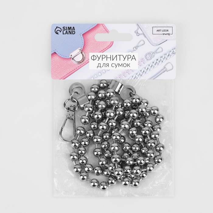 Цепочка для сумки, с карабинами, d=8 мм, 120 см, цвет серебряный — Характеристики
