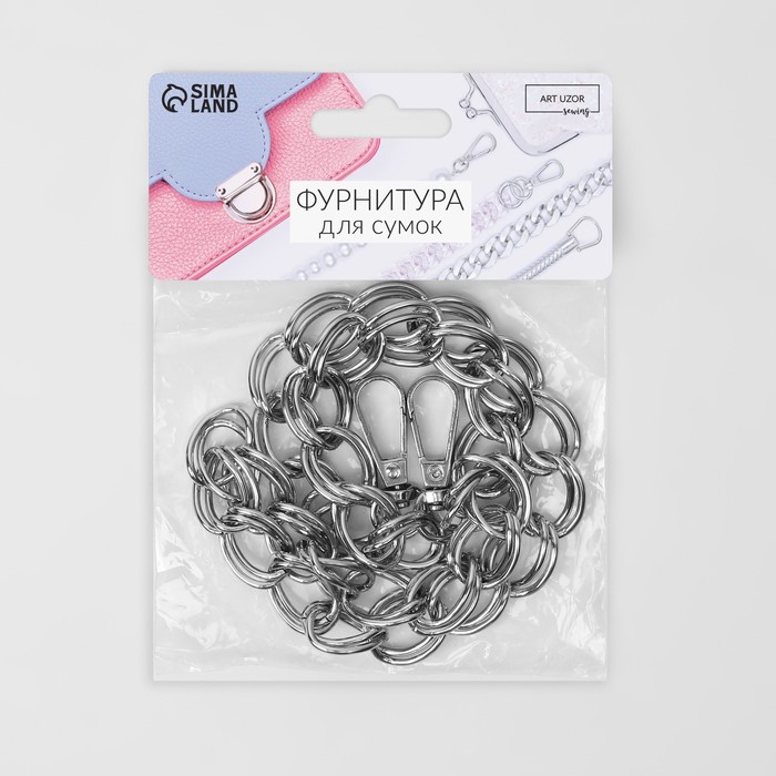 Цепочка для сумки, с карабинами, металлическая, двойная, 19×14 мм, 60 см, цвет серебряный — Характеристики