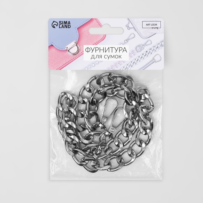 Цепочка для сумки, с карабинами, металлическая, плоская, 18×13 мм, 60 см, цвет серебряный — Характеристики
