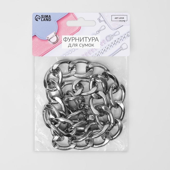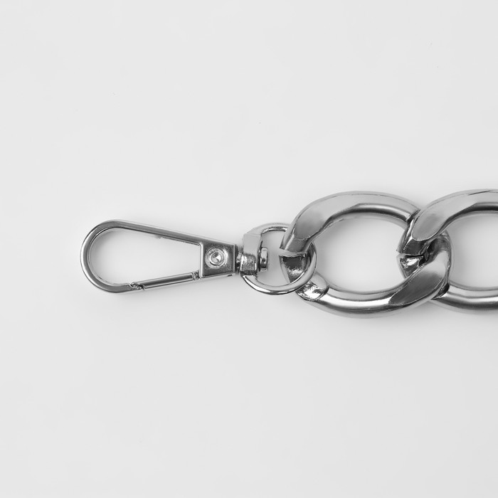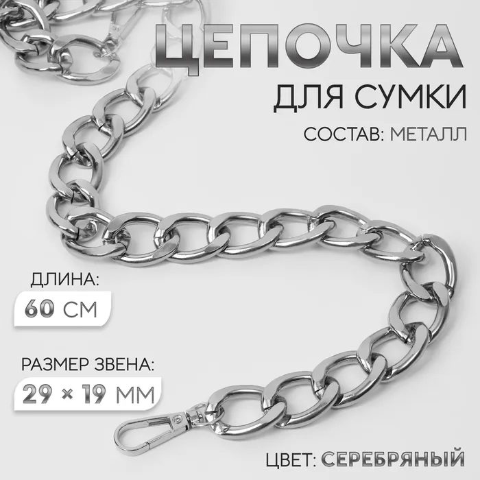 Цепочка для сумки, с карабинами, металлическая, плоская, 29×19 мм, 60 см, цвет серебряный — Характеристики