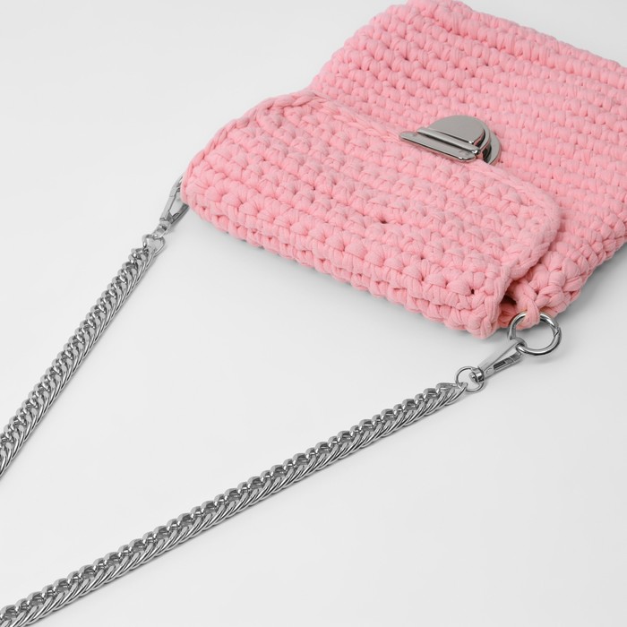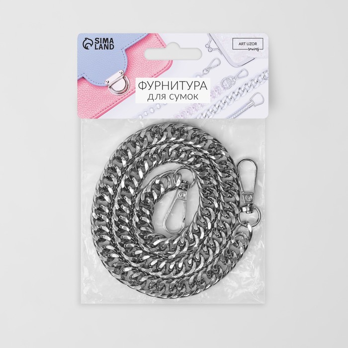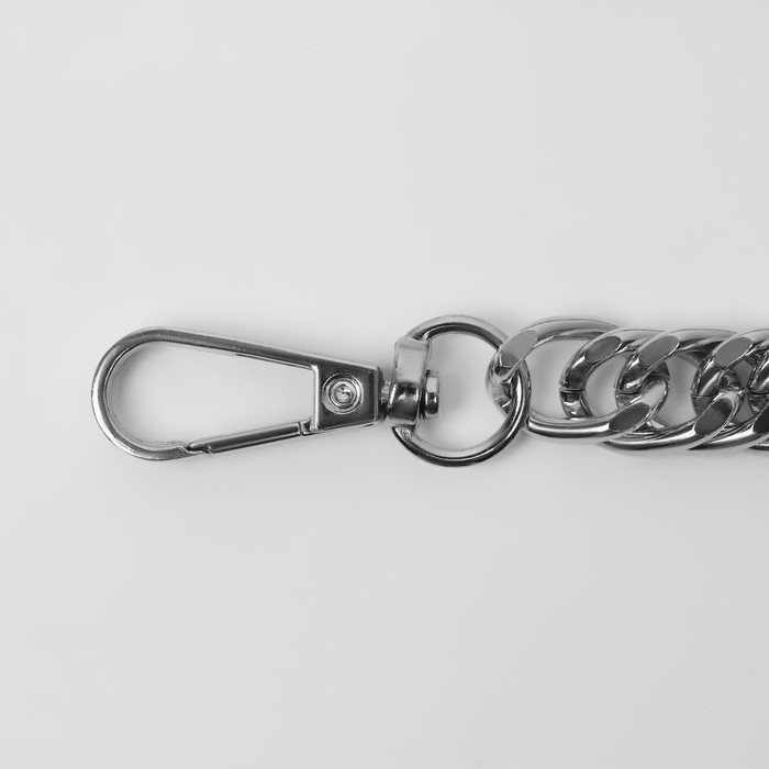 Цепочка для сумки, с карабинами, металлическая, плоская, плотное плетение, 15×10 мм, 60 см, цвет серебряный — Характеристики
