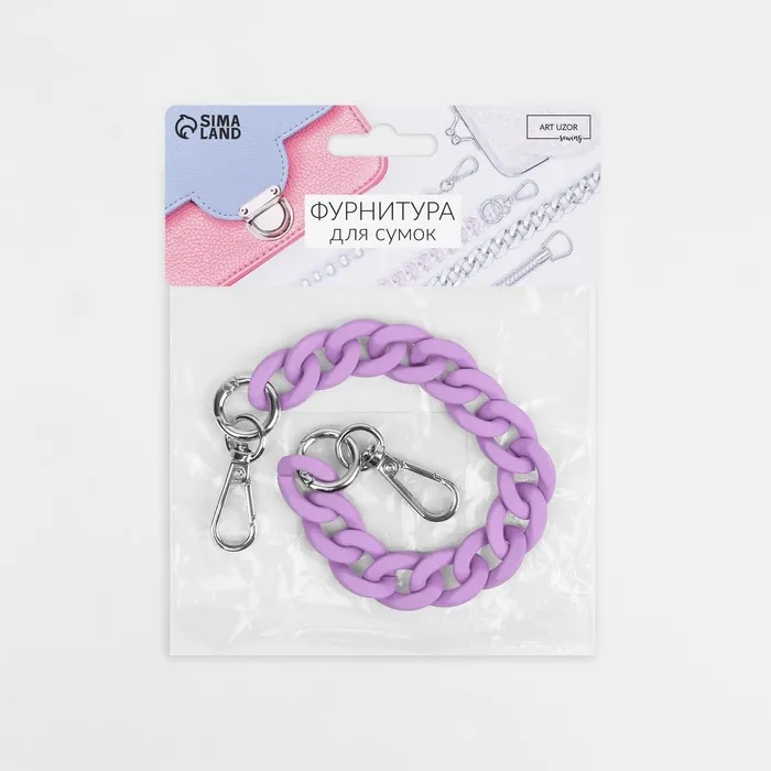 Цепочка для сумки, с карабинами, пластиковая, 23×17 мм, 30 см, цвет сиреневый, серебряный — Характеристики