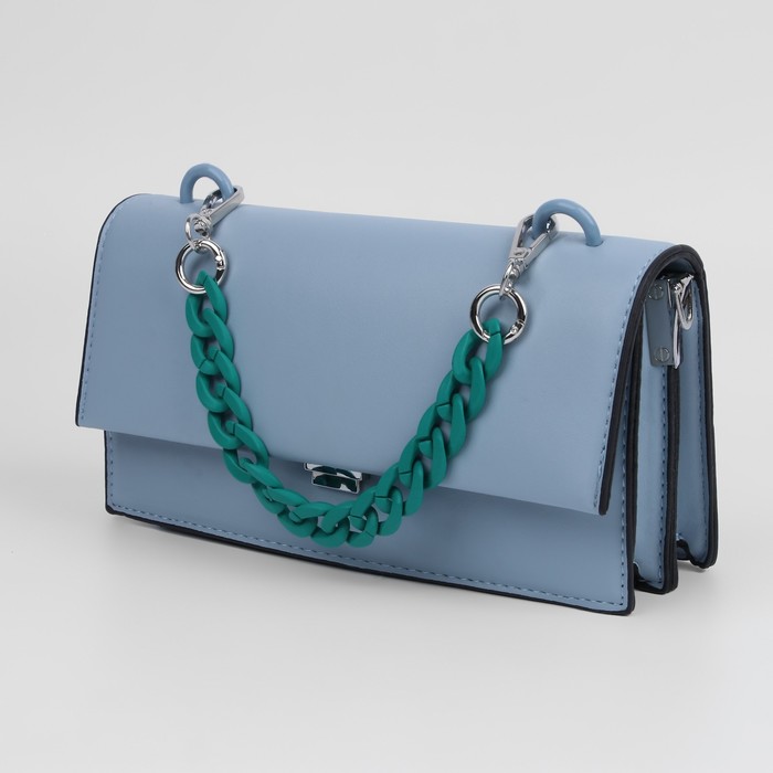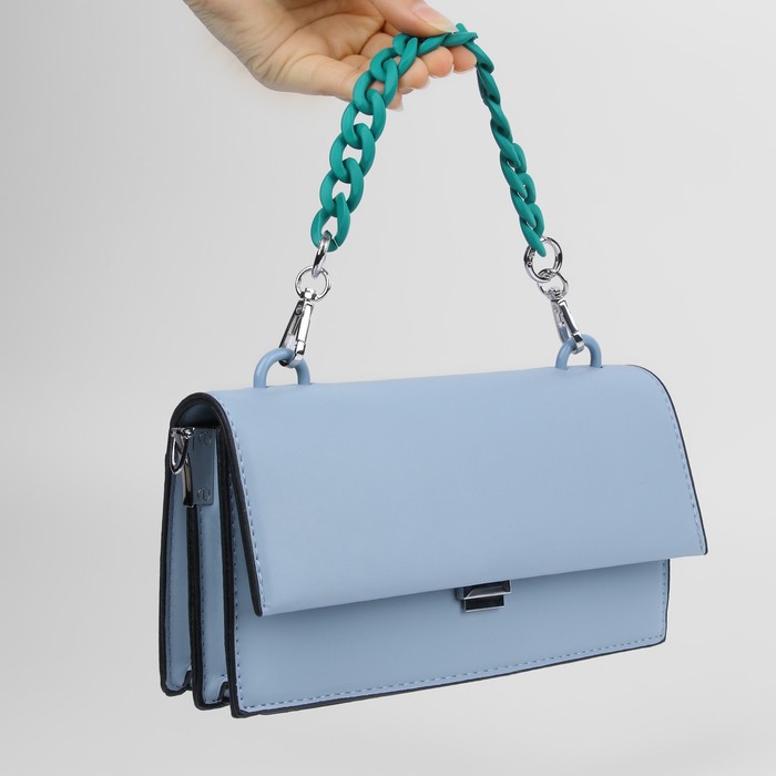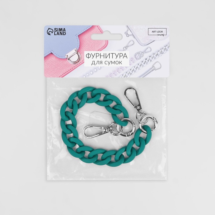 Цепочка для сумки, с карабинами, пластиковая, 23×17 мм, 30 см, цвет зелёный, серебряный — Характеристики