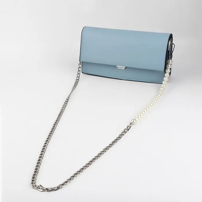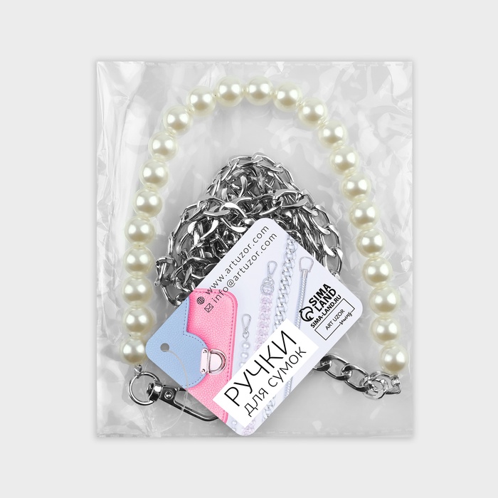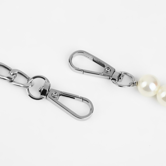 Цепочка для сумки, с карабинами, с жемчужными бусами, d=12 мм, 14×8 мм, 120 см, цвет серебряный — Характеристики