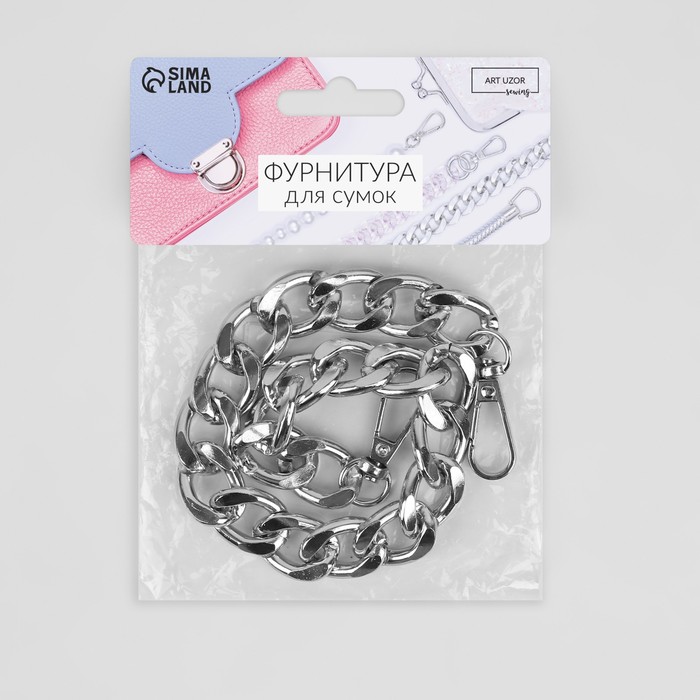 Цепочка для сумки, с карабинами, железная, 22×16 мм, 30 см, цвет серебряный — Характеристики