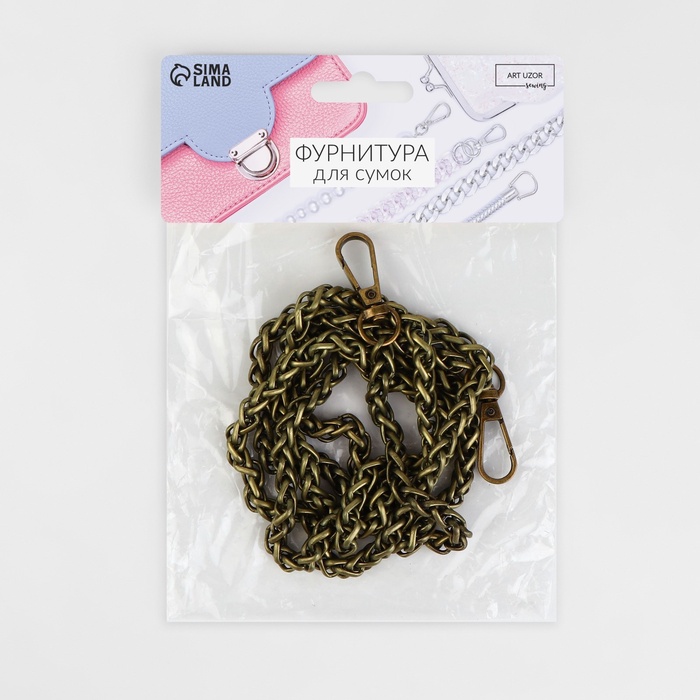 Цепочка для сумки, с карабинами, железная, 7×7 мм, 120 см, цвет бронзовый — Характеристики