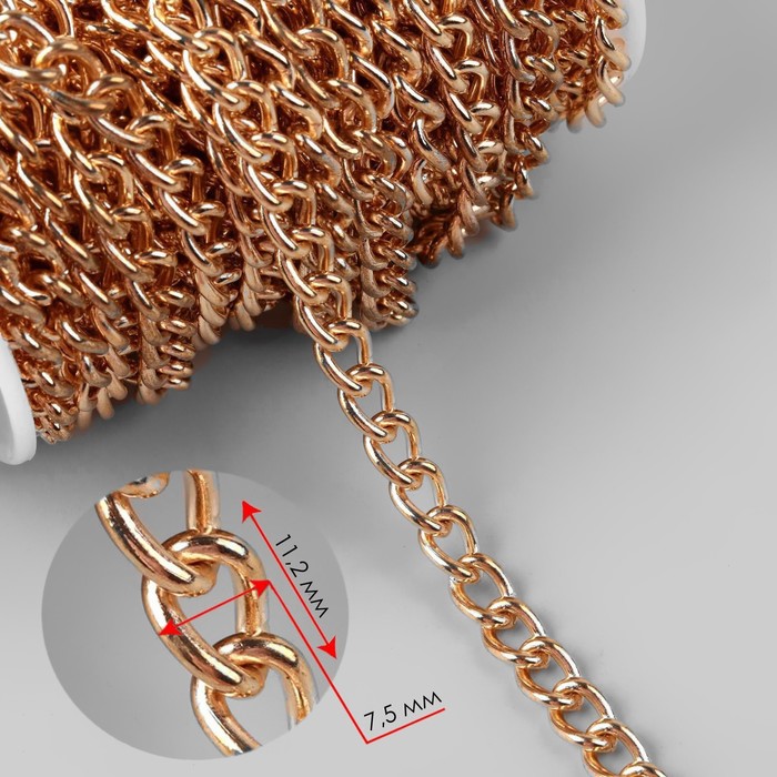 Цепочка для сумки, железная, 7.5×11.2 мм, 10±0.5 м, цвет золотой — Характеристики