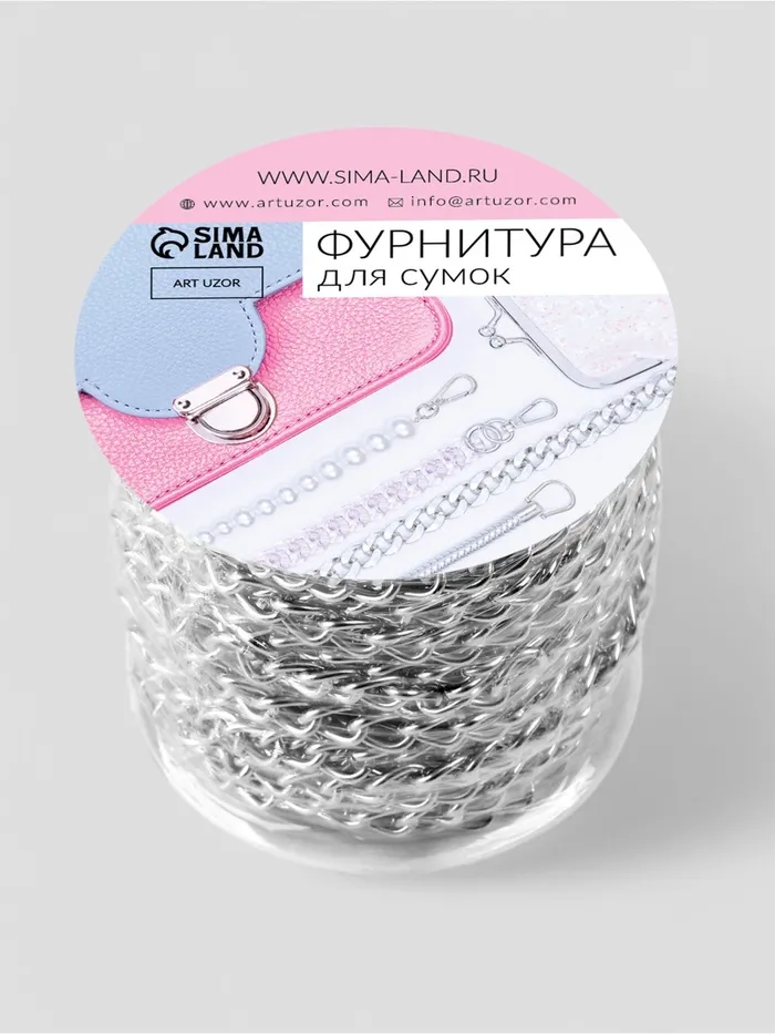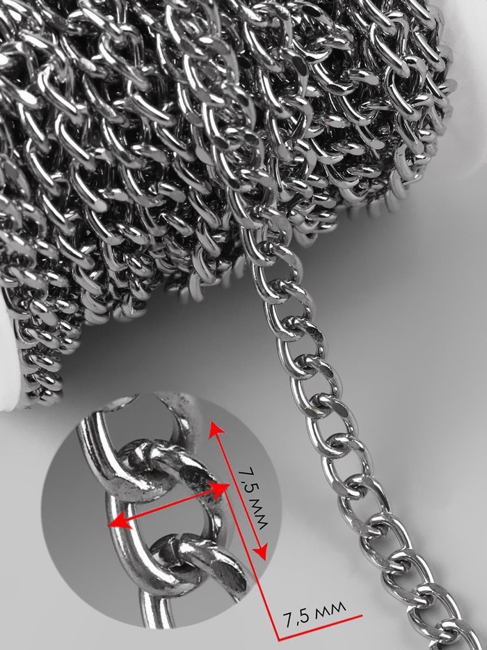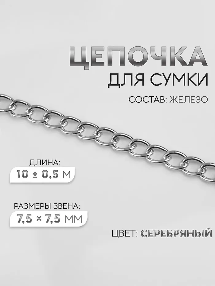 Цепочка для сумки, железная, 7.5×7.5 мм, 10±0.5 м, цвет серебряный — Характеристики